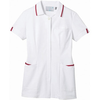 白×バーガンディで気持ちも華やかに!クラシカルデザインでおしゃれに決まるナースウェア。住商モンブランの半袖ナースジャケット。アクセントカラーを効かせておしゃれに演出。襟元の配色が顔まわりをすっきりと、袖口スリットの配色が二の腕をほっそり見せます。後ろは高めの位置にベルトデザインを入れて、すらりと脚長に。持ち物が取り出しやすく整理しやすいダブルポケット。シワになりにくいイージケア性も魅力です。制菌、透け防止、制電、防汚といった機能付き。