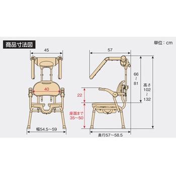 ●最大使用者体重:100kg●サイズ:幅54.5~59×奥行57~58.5×高さ102~132cm、座面までの高さ/35~50cm●重量:約7kg●材質:温浴ユニット本体/PP、座面・背もたれ/PE、グリップ/エラストマー、ひじ掛け/PP、脚ゴム/合成ゴム、ソフトパッド/EVA、パイプ/アルミニウム●入数:1●色調:ベージュ●※材質名はそれぞれPP=ポリプロピレン、PE=ポリエチレン、ABS=ABS樹脂、PVC=塩化ビニル樹脂、EVA=エチレン酢酸ビニル共重合樹脂を表しています。
