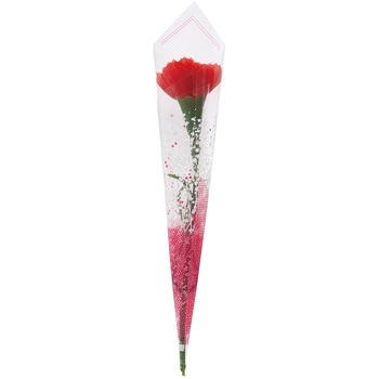2024年の母の日は5月12日(日) 赤い造花カーネーションが一輪ずつラッピングされています。母の日の店内飾りつけに使ったり、ノベルティとして配ったり、ギフトラッピングにつけたり、使いみちは無限大!