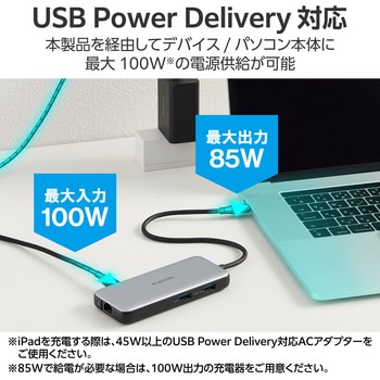 USB Type-C(TM)コネクターを経由して最大100Wの電力をデバイス/パソコン本体に供給するUSB Power Deliveryに対応しています。