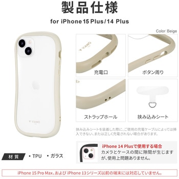 材質TPU+ガラスタイプケース型対応機種iPhone 15 Plus/iPhone 14 Plus特性耐傷・耐衝撃内容量1個