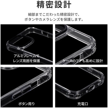 【耐衝撃】 カメラ周りをアルミフレームでしっかり保護/硬いポリカーボネートと柔らかく耐衝撃性に優れたTPUのハイブリッド仕様/柔軟性があり着脱が簡単/角に衝撃を吸収するエアクッションを搭載/ボタンやカメラレンズを保護する精密設計/マイクロドット加工で端末に張り付きにくい/ショルダーストラップの取り付けに最適な「挟み込みシート」付属
