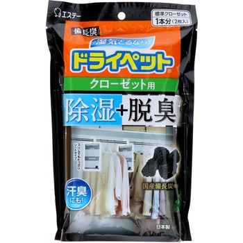 除湿剤に備長炭と活性炭を特殊配合しているので、湿気をとりながら、気になるニオイを脱臭します。湿気を吸うと薬剤がゼリー状になり、除湿効果がひとめでわかります。衣類の収納時に湿気とニオイを吸いとります。