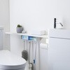 柄の長い物からお掃除シートやトイレ用スタンプなどトイレ用品や掃除アイテムを一括収納。様々なトイレ用品や掃除アイテムをまとめて収納できます。隠したい物も市販の収納ケースを使えば引き出しのように使えます。収納ケースは付属しておりません。トイレ棚の下に木ネジでしっかり固定。付属のフックは可動式でお好みの位置に取り付け可能。様々な形状の掃除アイテムがスッキリ収まります。トイレ用品や掃除アイテムを一括収納できるのでトイレ棚がスッキリ片付きます。