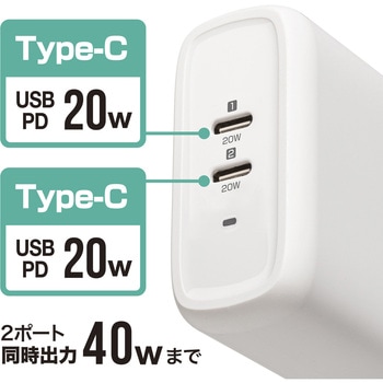USB Power Delivery(USB PD)規格の最大20W対応したUSB Type-Cポートを2ポート備えたACアダプタです。
