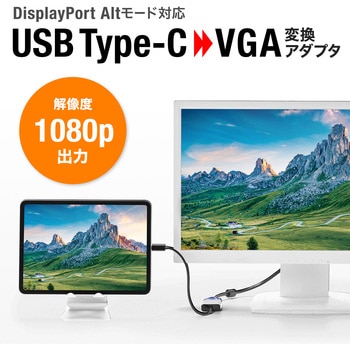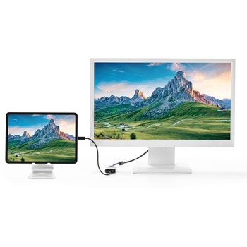 USB Type-C搭載(映像出力に対応したType-Cポートのみ)のパソコンやタブレットから、VGA(ミニD-sub15pin)のアナログ映像信号に変換するアダプタです。