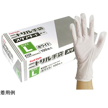 ニトリル手袋 PSニトリルスタンダード 白 粉付 L パックスタイル