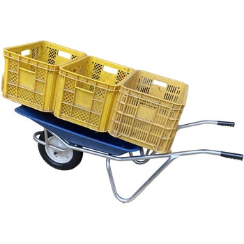 ハウス内でポット苗の移動や定植ハウスまでの移動に使っています。今までは1つずつトレーを運んでいたので単純に4倍早く移動出来ています。3台入りなので一輪車を2台にして積む人移動する人と別にしてさらに高速移動が可能になりました。もう一台は四輪台車でイボ竹を運ぶ時の落下防止に使ったりしてます。トレーを運ぶ時に締め付ける蝶ネジ?か何かに引っかかってしまうことがあったかな?