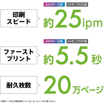 さらにA4カラー・モノクロ文書ともに、1ページあたり約25ipmを実現する高速プリント。