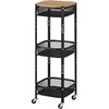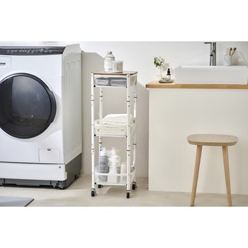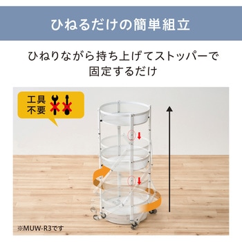 組み立てはひねるだけ!どこでも使える移動式ワゴンです。ひねりながら持ち上げ、付属されているストッパーを引き下げフレームを固定し完成です。使用しない時は折りたたんで、簡単コンパクトに収納ができます。サビに強く、通気性の良いメッシュ棚です。インテリアに馴染む風合いの良い木天板付きです。天板の上も有効活用できます。キャスターがあるので移動がラクに行えます。2個はストッパー付きです。隙間収納としてもリビングやキッチン、ランドリー周り、子供部屋など場所を問わずお使いいただけます。
