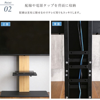テレビの配線や電源コードなどはテレビスタンドの支柱に隠せれるので、スッキリ収納できます。