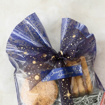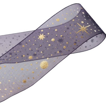 星空のようなキラキラのデザインが華やかなネイビーのオーガンジーリボンです。ギフトボックスや貼箱などを豪華に演出します。