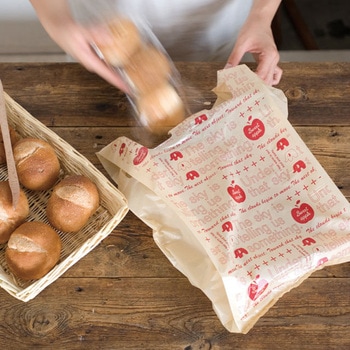 昔懐かしいような印象の、ぞうとリンゴをあしらったキュートなレジバッグです。お子様に人気のパン屋さんや洋菓子店さんにおすすめしたい商品です。