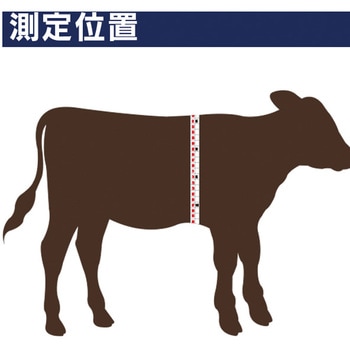 体重計の設備が無くても体重推定が可能に!!牛衡機が無い場所でも巻尺式で胸囲を測る事で簡単に仔牛の体重推測が可能です。牛の反対側へテープが落ち易くする為、テープ先端部に重りが付いています。黒毛和種であれば雌雄問わず活用が可能です。メジャー記載データ熊本県農業研究センター(畜産研究所)のデータを活用