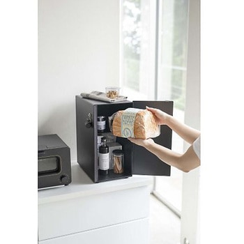 24Lの大容量でもスリムで省スペースなタワー型ブレッドケース。キッチンカウンターなどで、パンやジャム・お菓子等を隠しながら美しく収納。スリムなタワー型で狭いカウンターにも置けます。棚の上下で高さが違うので、収納するものに合わせて使い分けできます。背の高い物も手前に置けて便利。パンも1斤まるごとしっかり収納。置く場所に合わせて扉の左右が選べます。本体はスチール製でマグネットが付きます。組立完成品です。