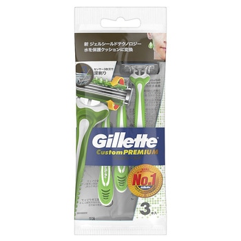 新ジェルシールドテクノロジー。水を保護クッションに変換し、なめらかな剃り心地へ。ジレットCustom PREMIUM ジェルシールド 髭剃り新ジェルシールドテクノロジー水を保護クッションに変換センサー3枚刃で深剃り快適な深剃りを実現する 7つの ジレットテクノロジー