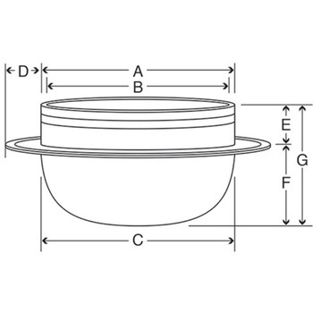 ●サイズ:口径外寸A/48.3cm、口径内寸B/47.0cm、胴外寸C/48.5cm、ツバ幅D/2.5cm、ツバ上E/5.8cm、ツバ下(外)F/19.0cm、深さ(内)G/24.8cm●満水量:33.0L●コード番号:BB0791