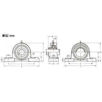 ●呼び番号UCP形:313●軸径(mm):65●サイズ(mm):H/90、L/340、A/90、J/260、N/25、N1/38、H1/36、H2/174、H5/188、B/75、S/30●材質:本体//ねずみ鋳鉄品 ボール/高炭素クロム軸受鋼●ボルトサイズ:M20●止めねじ付●円筒穴形