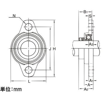 ●呼び番号UFL形:001●軸径(mm):12●サイズ(mm):H/63、L/38、A/11.5、J/48、N/7、A1/5.5、A2/5.5、A0/19、B1/17.5、S/4●材質:本体/亜鉛合金ダイカスト ボール/高炭素クロム軸受鋼●偏心輪付●円筒穴形●シルバーシリーズ
