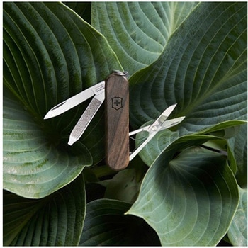 軽量で手触りが心地よいウォールナットの表面には美しい仕上げが施されており、はさみやマイナスドライバーなど普段使いに便利なツールを搭載しています。