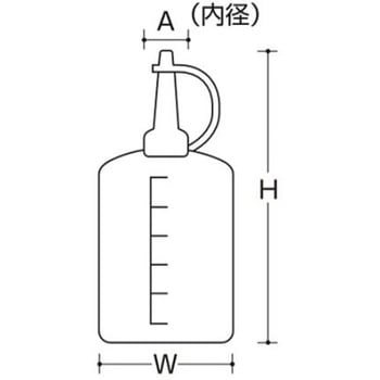 ●容量(mL):250●サイズ(mm):Φ64×157(H)●キャップ色:黄●目盛単位:25mL●材質:ポリエチレン●ノズル長:55mm●内径:15mm●横倒しになっても液漏れしない、ノズルキャップ付●目盛付●ノズル外径:約5mm(先端)