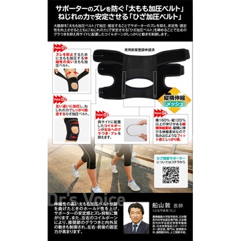 【サポーターのズレを防ぐ】 太ももを加圧する伸縮性の高いベルトを採用する事によりサポーターのズレを防止します。【ひざ周りのコイルボーン】 左右にコイルボーンを採用する事で、ひざ関節のグラつきと内反外の動きも制御され、左右・前後の固定力が高まります。【縦横伸縮素材】横160%・縦120%の伸びがあり、ひざを包み込むようなフィット感としっかり感を実現しました。