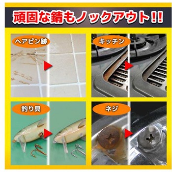 用途:自動車、オートバイ、キッチン用品、農機具、配管部品などさまざまな場所の錆び取りに。