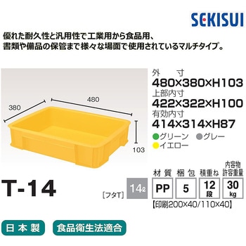 ●色:グリーン●容量(L):14●外形寸法(mm)間口:480●外形寸法(mm)奥行:380●外形寸法(mm)高さ:105●有効内寸(mm)間口:414●有効内寸(mm)奥行:314●有効内寸(mm)高さ:88●適用カード差し(別売):A85●出荷単位(個):5