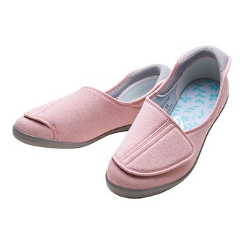 つま先・かかとをそり上げた、つまずきにくい設計です。足入れ時に足指がひっかかりにくく、手を使わなくても履き易い独自デザインの斜めカットです。かかと部のプルタブは脱ぎ履き時のつまみとしても使用できて便利です。アッパー表素材は綿100%ニットで、伸縮性がありフィット感のよい3層構造です。インソールのネーム欄は名前の記入も可能です。