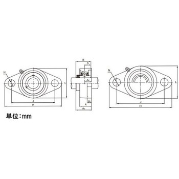 ●呼び番号MUCFL形:202●サイズ(mm):H/113、L/60、A/25.5、J/90、N/12、A1/10、A2/15、A0/33.3、B/31、S/12.7●材質:本体/ステンレス鋳鋼 ボール/ステンレス鋼●止めねじ付●円筒穴形●ステンレスシリーズ