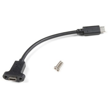 This panel mount USB-C extension cable enables you to more easily enclose a project that contains a USB-C port. The cable is 6" in length and includes two 14mm M3 screws compatible with the cable's 3mm panel mount holes, spaced 18mm apart.