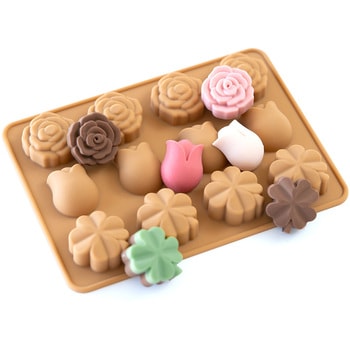 チョコレートを流して固めるだけで、簡単に成型できるシリコン製モールドです。3種のアソートになっていて、一度に12個のチョコレートが作れます。