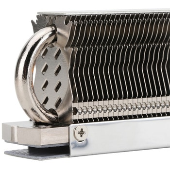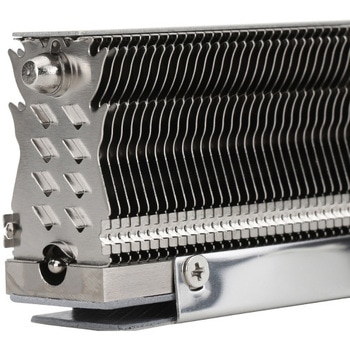 M.2 SSD用のヒートシンクです。 通常のプレート状のヒートシンクと違い、6mmヒートパイプを使用して大きなヒートシンクを搭載した、より強力にM.2 SSDを冷やしたい人向けのハイエンドなヒートシンクです。 幅はM.2の幅からはみ出していないので、他の拡張スロットに干渉しないようになっています。 より強力な冷却を求めるエンスージアスト向けのアイテムと言えるでしょう。