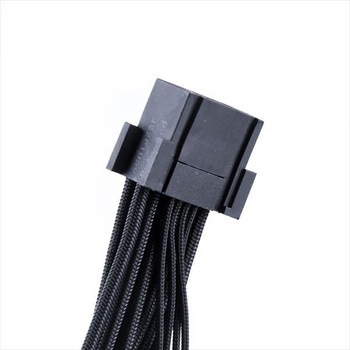 12VHPWRコネクタを延長するL字ケーブルです。 12VHPWRコネクタに電源ケーブルを取り付けるとケースの側板との間に隙間がない場合に使用することでケーブルに無理な力がかからないようにすることが出来ます。