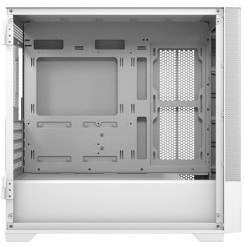 標準でフロントに140mmのARGBファンが2基搭載されているMicroATX対応ミニタワーケースです。 フロントやトップ、リア、サイドやボトム部分に120mm冷却ファンを最大で11基搭載可能です。 全高の高くないミニタワーケースでもしっかりと冷却性を高めることが可能です。 ミニタワーケースとしては奥行が長めで、トップとフロントに360mmラジエーターの搭載が可能です。 サイドパネルに12cmファンを2基搭載可能で、背面に当たるサイドパネルには特設された吸気口があり、ここから吸入されるエアがケース内部のエアフローを改善します。