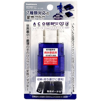 持ち運び便利な世界最小、最薄の手のひらサイズのマルチ変換アダプターです。これ一つで7種類(A・C・O・SE・BF・O2・CB:ブラジル)の電源コンセントに対応できます。新規格のBFコンセントとO2プラグに対応した補助プラグ付き。便利な専用ケース付きです。