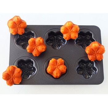 桜の形がかわいい、春にぴったりな桜モールド。スチール製(金属型)は熱伝導がよく、より焼き菓子らしい香ばしい焼き色に仕上がります。1個当たり、35g程度生地を入れて焼き上げるとちょうどいい◎型に深さがあるので、シェル型のマドレーヌ型よりも、おへそがぷっくり焼き上がります。ひっくり返すだけで、コロンと型から外せます。