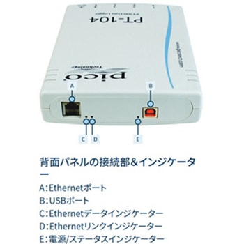 最大4台の白金抵抗温度計を使って-200℃~+800℃の範囲で温度の測定&記録ができるデータロガーです。PT100とPT1000に対応し、2、3、4線式センサーをサポートしています。分解能24ビットで、校正済み基準抵抗器を使用し電圧と抵抗も測定できます。無料のデータロギングソフトPicoLog 6を使用します。パソコンとUSBで接続しますが、USBはPoE(Power-over-Ethernet)にも対応しています。リモート操作用のEthernetインターフェースにより、1台で最大20台のパソコンを実行できます。