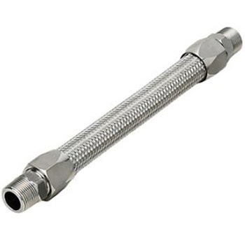 適用流体:水・油・空気・蒸気・薬品 ※ステンレスを腐蝕させない流体に限る。配管整備が難しい場所での取付が容易なフレキシブルタイプです。チューブにフレキ専用軽量ユニオンを加締めて取り付けた構造です。※ねじれは吸収できません。