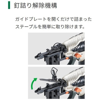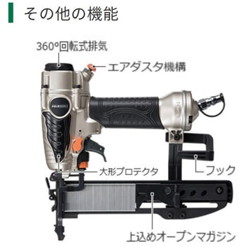 内装・型枠作業等に最適のMA線用タッカ軽量1.2kg単・連発打ち切替機構搭載ダイヤル式打込深さ切替で簡単に打込み調整が可能。釘詰まり解除機構搭載で詰まったステープルも簡単に取り除けます。排気方向を360°回転調整できます。エアダスタ機構搭載相手材への傷つけを防止する大形プロテクタフック付上込めオープンマガジン