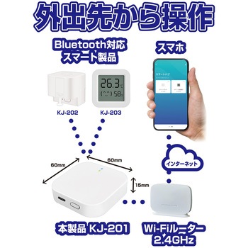 ゲートウェイとしてBluetoothのみ搭載のフィンガーボットや温湿度計などのスマート製品をインターネットに接続させて、外出先からスマホでコントロール。いつでもスマホで確認/操作、アプリ1つで家電を一括管理。