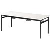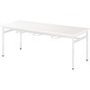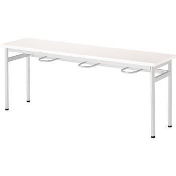 丸椅子を引っかけて収納できる食堂テーブルです。(メーカースツール製品) 天板は耐水・耐熱性に優れた高圧メラミン化粧板で傷が付きにくくなっております。脚端にはレベル調整用のアジャスターが付いています。国産テーブルの為、安心設計です。抗菌