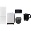 用途寮や事務所、休憩室などに。会社 オフィス 事務室 休憩室 仮眠室 ラウンジ 給湯室 寮 合宿 施設 宿泊 民泊 ホテル 旅館 宿舎 新生活 引越し 単身赴任 大学入学 スターターセット 家電セット 冷蔵庫 洗濯機仕様【冷蔵庫】幅50×奥行56×高さ142.2cm●容量:173L(冷蔵室121L/冷凍室52L)●年間消費電力量:250kWh/年(50Hz/60Hz)【洗濯機】幅60×奥行59.5×高さ94.5cm●容量:8.0kg(洗濯時)、1.5kg(風乾燥時)●8つのコース搭載(標準・毛布・おいそぎ・ドライ・ソフト・つけおき・部屋干し・槽洗浄)【炊飯器】幅21.5×奥行25.8×高さ20.8cm●炊飯容量:3.0合炊き●11種の炊き分けメニュー:白米ふつう、白米やわらかめ、白米かため、省エネ、早炊き、お湯炊き、パン、玄米、雑穀米、おかゆ、炊込み【電子レンジ】幅44×奥行32.5×高さ25.5cm●容量17L、ターンテーブル●高周波出力:50Hz(500W、200W相当)、60Hz(650W、500W、200W相当)【電気ケトル】幅21.5×奥行15×高さ18.5cm●容量:1.0L●空焚き防止機能搭載間口(mm)500保証期間1年定格内容積(L)173内容量1セット