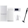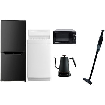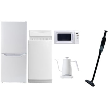 用途寮や事務所、休憩室などに。会社 オフィス 事務室 休憩室 仮眠室 ラウンジ 給湯室 寮 合宿 施設 宿泊 民泊 ホテル 旅館 宿舎 新生活 引越し 単身赴任 大学入学 スターターセット 家電セット 冷蔵庫 洗濯機仕様【冷蔵庫】幅47.4×奥行49.5×高さ113cm●容量:106L(冷蔵室73L/冷凍室33L)●年間消費電力量:268kWh/年(50Hz/60Hz)【掃除機】スティック時サイズ:幅22.6×奥行10.3×高さ100cm●ハンディ時サイズ:幅7.5×奥行7.5×高さ46cm●わずか870gの軽量クリーナー●吸込仕事率:(パワフル)46W、(標準)23W、(弱)15W【洗濯機】幅56×奥行54.5×高さ98cm●容量:6.0kg(洗濯時)、1.5kg(風乾燥時)●8つのコース搭載(標準・毛布・おいそぎ・ドライ・ソフト・つけおき・部屋干し・槽洗浄)【電子レンジ】幅44×奥行32.5×高さ25.5cm●容量17L、ターンテーブル●高周波出力:50Hz(500W、200W相当)、60Hz(650W、500W、200W相当)【電気ケトル】幅28.5×奥行18×高さ22.5cm●容量:800ml●温度設定範囲:60-100度の間で1度単位で温度調整可能間口(mm)474保証期間1年定格内容積(L)106内容量1セット
