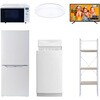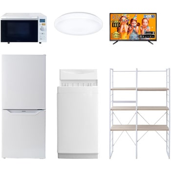 家電セット 寮 オフィス 事務所 新生活家電 6点セット (6kg洗濯機 106L冷蔵庫 オーブンレンジ シーリングライト 43型液晶テレビ 家電収納ラック)