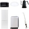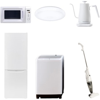 用途寮や事務所、休憩室などに。会社 オフィス 事務室 休憩室 仮眠室 ラウンジ 給湯室 寮 合宿 施設 宿泊 民泊 ホテル 旅館 宿舎 新生活 引越し 単身赴任 大学入学 スターターセット 家電セット 冷蔵庫 洗濯機仕様【シーリング】幅50×奥行50×高さ9.5cm●全光束:3500lm●30分、60分OFFタイマー付き【冷蔵庫】幅50×奥行56×高さ142.2cm●容量:173L(冷蔵室121L/冷凍室52L)●年間消費電力量:250kWh/年(50Hz/60Hz)【掃除機】スティック時サイズ:幅24×奥行13×高さ111cm●ハンディ時サイズ:幅10×奥行10.5×高さ48cm●スティック&ハンディの2WAY●吸込仕事率:40W【洗濯機】幅60×奥行59.5×高さ94.5cm●容量:8.0kg(洗濯時)、1.5kg(風乾燥時)●8つのコース搭載(標準・毛布・おいそぎ・ドライ・ソフト・つけおき・部屋干し・槽洗浄)【電子レンジ】幅44×奥行32.5×高さ25.5cm●容量17L、ターンテーブル●高周波出力:50Hz(500W、200W相当)、60Hz(650W、500W、200W相当)【電気ケトル】幅28.5×奥行18×高さ22.5cm●容量:800ml●温度設定範囲:60-100度の間で1度単位で温度調整可能間口(mm)500保証期間1年定格内容積(L)173内容量1セット