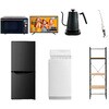 家電セット 寮 オフィス 事務所 新生活家電 7点セット (6kg洗濯機 106L冷蔵庫 オーブンレンジ 43型液晶テレビ 温調ケトル スティッククリーナー 家電収納ラック)