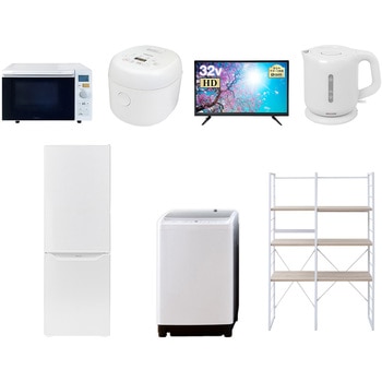 家電セット 寮 オフィス 事務所 新生活家電 7点セット (8kg洗濯機 173L冷蔵庫 オーブンレンジ 炊飯器 32型液晶テレビ 電気ケトル 家電収納ラック)