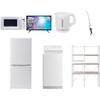 家電セット 寮 オフィス 事務所 新生活家電 7点セット (6kg洗濯機 106L冷蔵庫 電子レンジ 32型液晶テレビ 電気ケトル スティッククリーナー 家電収納ラック)
