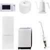 用途寮や事務所、休憩室などに。会社 オフィス 事務室 休憩室 仮眠室 ラウンジ 給湯室 寮 合宿 施設 宿泊 民泊 ホテル 旅館 宿舎 新生活 引越し 単身赴任 大学入学 スターターセット 家電セット 冷蔵庫 洗濯機仕様【冷蔵庫】幅50×奥行56×高さ142.2cm●容量:173L(冷蔵室121L/冷凍室52L)●年間消費電力量:250kWh/年(50Hz/60Hz)【掃除機】スティック時サイズ:幅24×奥行13×高さ111cm●ハンディ時サイズ:幅10×奥行10.5×高さ48cm●スティック&ハンディの2WAY●吸込仕事率:40W【洗濯機】幅60×奥行59.5×高さ94.5cm●容量:8.0kg(洗濯時)、1.5kg(風乾燥時)●8つのコース搭載(標準・毛布・おいそぎ・ドライ・ソフト・つけおき・部屋干し・槽洗浄)【炊飯器】幅21.5×奥行25.8×高さ20.8cm●炊飯容量:3.0合炊き●11種の炊き分けメニュー:白米ふつう、白米やわらかめ、白米かため、省エネ、早炊き、お湯炊き、パン、玄米、雑穀米、おかゆ、炊込み【電子レンジ】幅44×奥行32.5×高さ25.5cm●容量17L、ターンテーブル●高周波出力:50Hz(500W、200W相当)、60Hz(650W、500W、200W相当)【電気ケトル】幅28.5×奥行18×高さ22.5cm●容量:800ml●温度設定範囲:60-100度の間で1度単位で温度調整可能間口(mm)500保証期間1年定格内容積(L)173内容量1セット